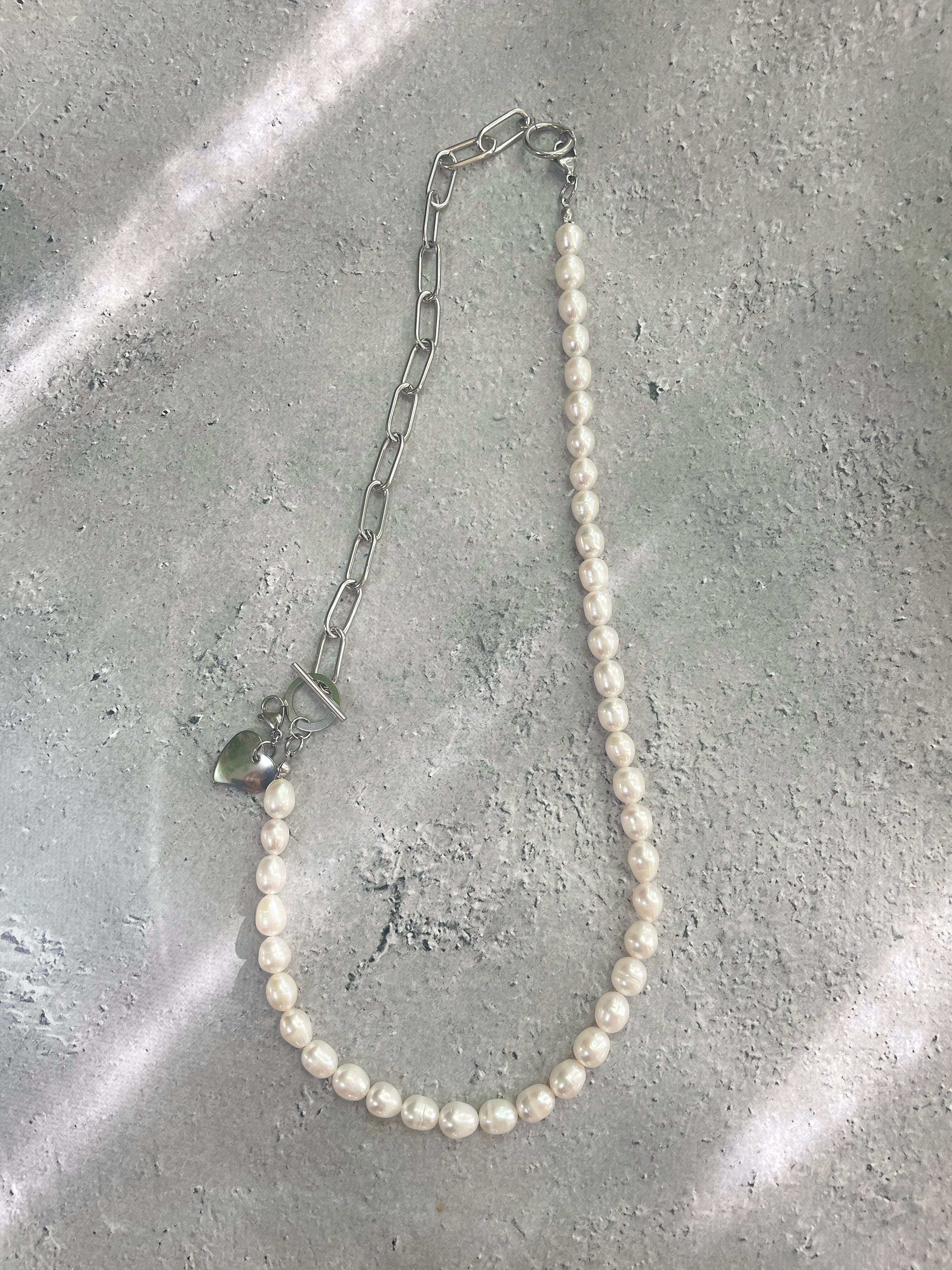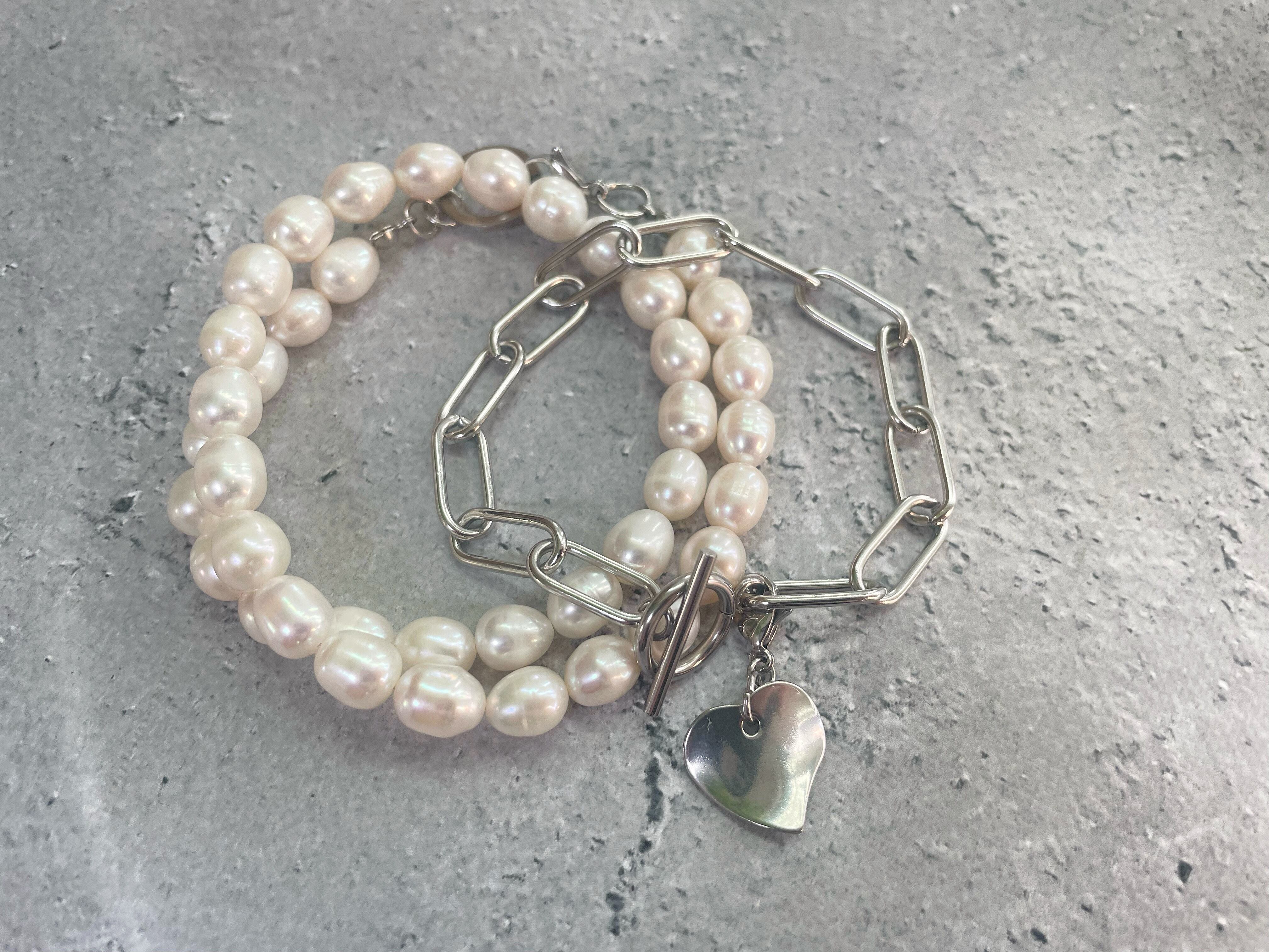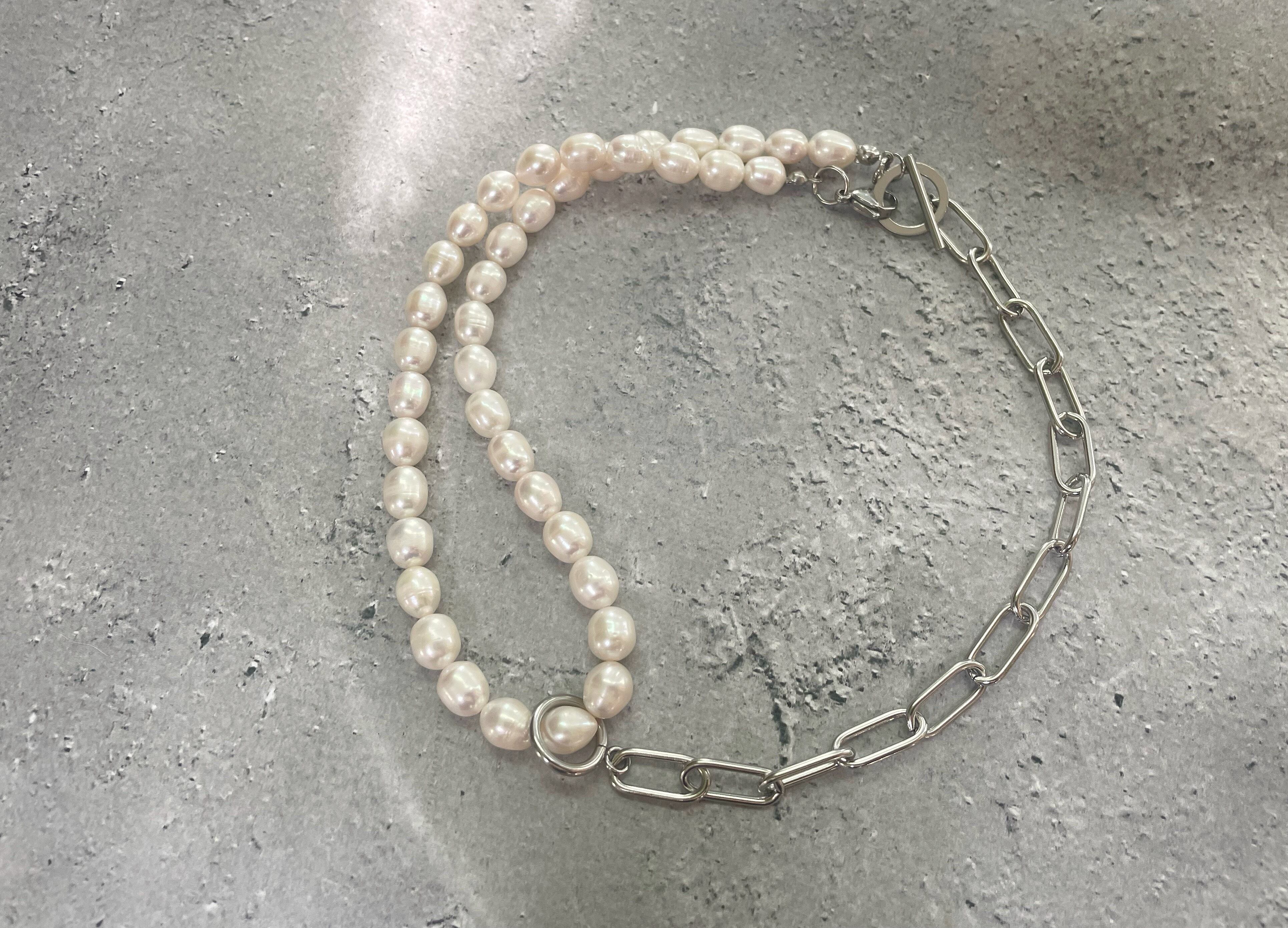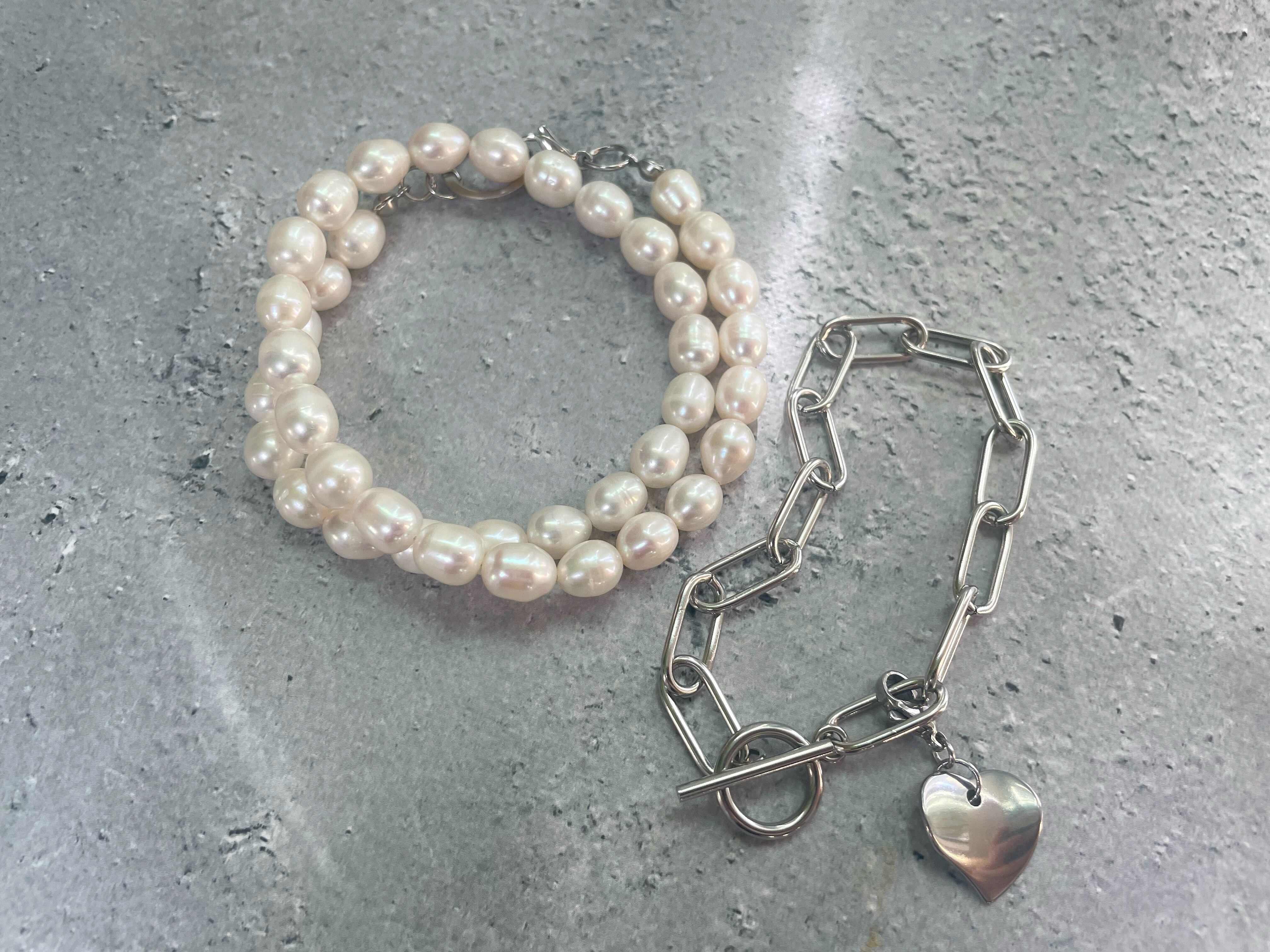 〔silver〕マルチ pearl necklace and chain bracelet